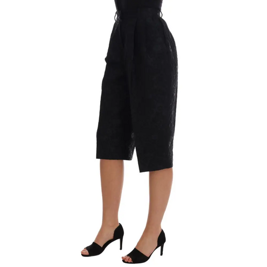 Dolce & Gabbana Black Brocade High Waist Capri Shorts