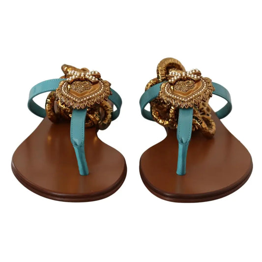 Dolce & Gabbana Chic Gladiator Flats with Heart Devotion Detail