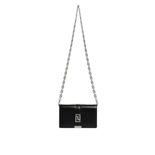 Versace Black Calfskin Leather Chain Strap Shoulder Crossbody Bag