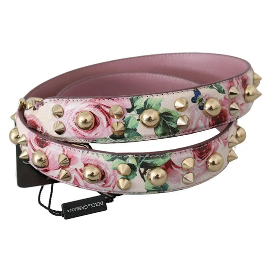 Dolce & Gabbana Pink Floral Leather Stud Accessory Shoulder Strap
