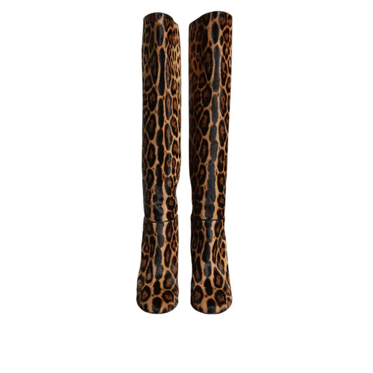 Dolce & Gabbana Beige Black Leopard Knee High Boots Shoes