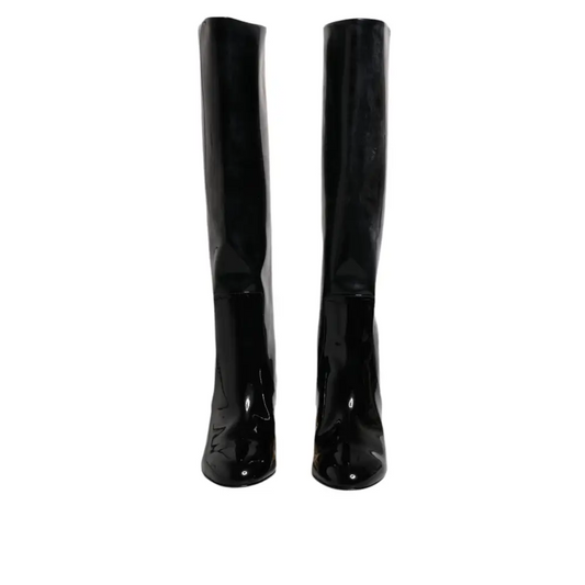 Dolce & Gabbana Black Patent Leather Vally High Boots Shoes