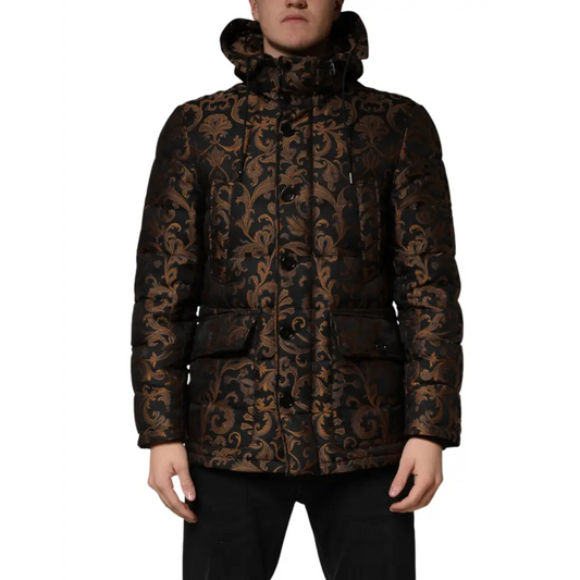 Dolce & Gabbana Black Floral Jacquard Quilted Hooded Jacket