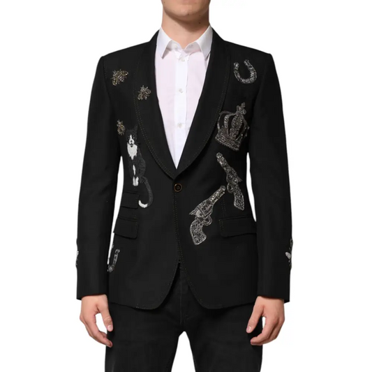 Dolce & Gabbana Black Bee Crown Embellished Suit Coat Blazer