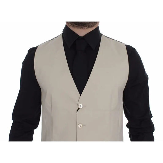 Dolce & Gabbana Beige Cotton Stretch Dress Vest Blazer