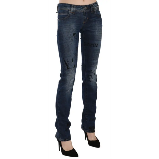 John Galliano Blue Newspaper Print Low Waist Skinny Denim Pants