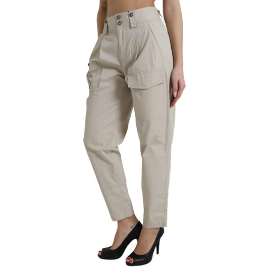 Dolce & Gabbana Beige Cotton High Waist Tapered Pants