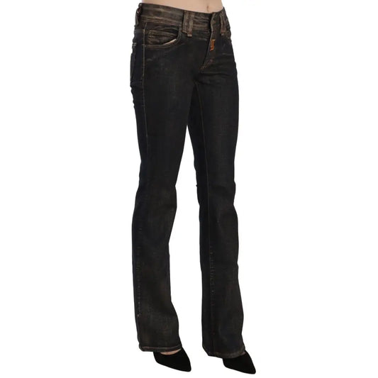 John Galliano Black Washed Mid Waist Flared Denim Pants Cotton