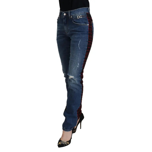 Dolce & Gabbana Blue Checkered Back Skinny Denim Jeans