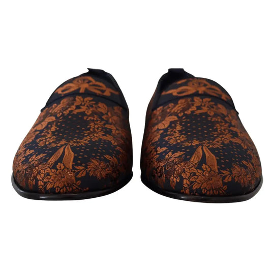 Dolce & Gabbana Blue Rust Floral Slippers Loafers Shoes