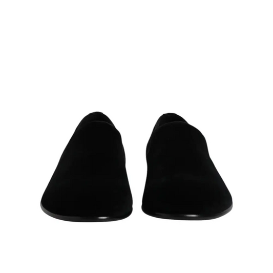 Dolce & Gabbana Black Velvet Slip On Loafers Formal Shoes