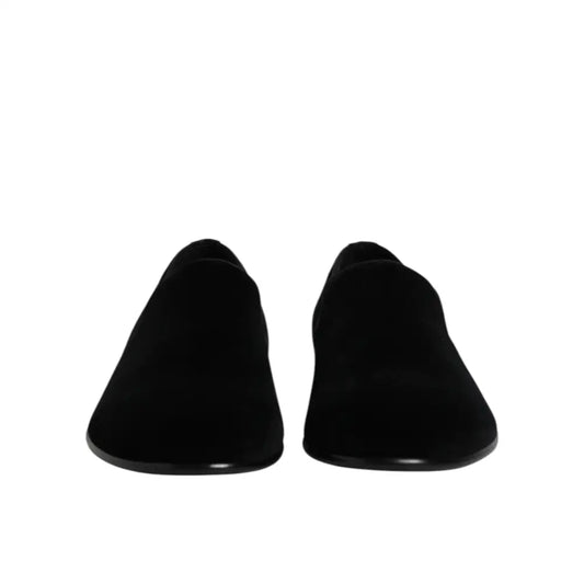 Dolce & Gabbana Black Velvet Slip On Loafers Formal Shoes