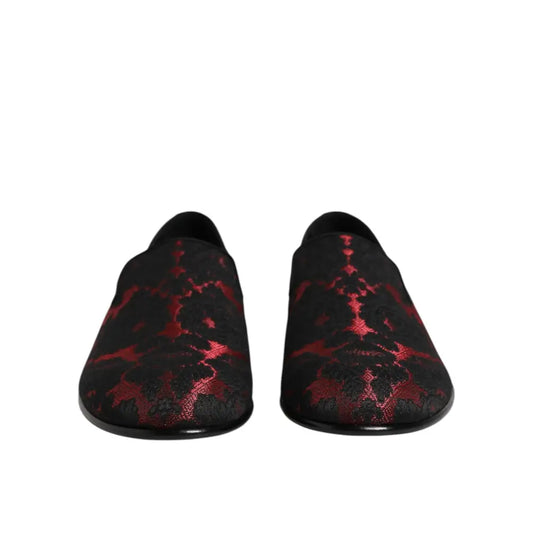Dolce & Gabbana Red Black Jacquard Slip On Loafers Shoes