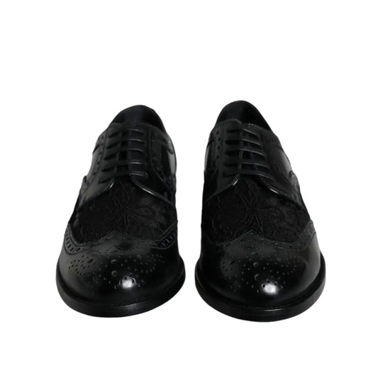 Dolce & Gabbana Black Leather Floral Lace Dress Formal Shoes