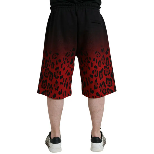 Dolce & Gabbana Red Leopard Print Cotton Bermuda Shorts