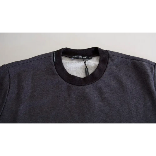 Dolce & Gabbana Dark Gray Cotton Crew Neck Pullover Sweater