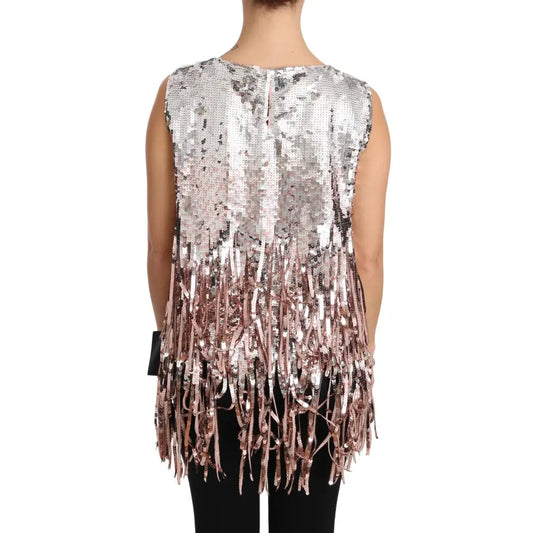 Dolce & Gabbana Golden Pink Sequined Fringe Tank Top