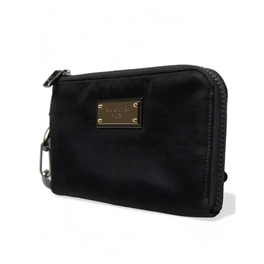 Dolce & Gabbana Black Nylon Logo Plaque Keyring Pouch Clutch Bag
