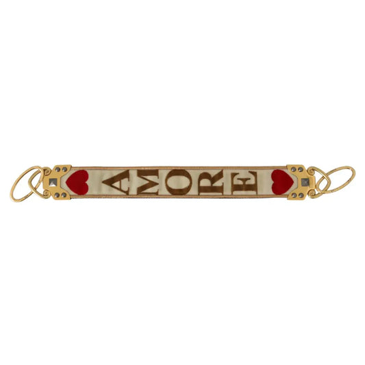 Dolce & Gabbana Gold White Textile Leather AMORE Shoulder Strap