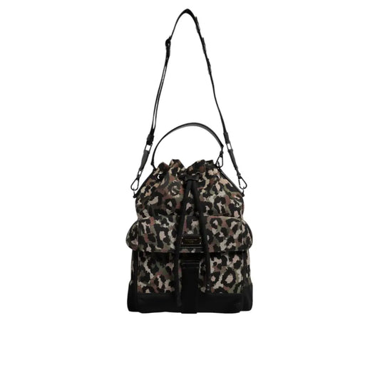 Dolce & Gabbana Multicolor Leopard Cotton Shoulder Bucket Bag