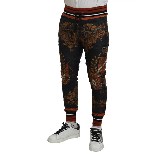 Dolce & Gabbana Grå Silke Baroque Crown Bukser & Jeans Sport Bukser & Jeans