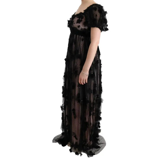Dolce & Gabbana Black Cotton Silk Floral Long Dress