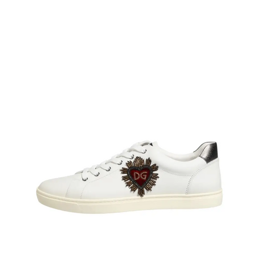 Dolce & Gabbana White Leather Heart Embellished Sneakers Shoes