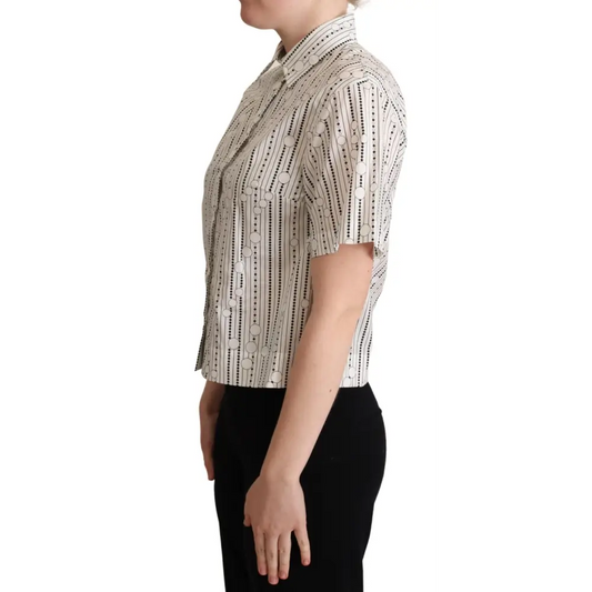 Dolce & Gabbana White Black Polka Dots Collar Blouse Shirt