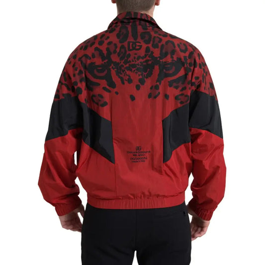 • Dolce & Gabbana Red Leopard Nylon Full Zip Sweater
