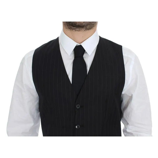 Dolce & Gabbana Black Striped Wool Silk Dress Vest Gilet