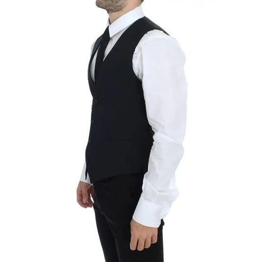 Dolce & Gabbana Black Wool Dress Formal Men Waistcoat Vest