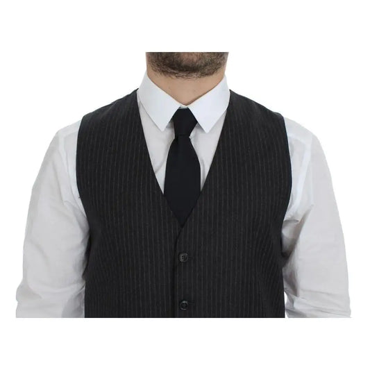 Dolce & Gabbana Gray Striped Wool Single Breasted Vest